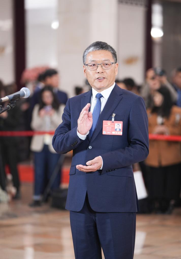 3月11日,第十四屆全國人民代表大會第三次會議第三場“代表通道”集中采訪活動在北京人民大會堂舉行。這是全國人大代表李東林接受媒體采訪。新華社記者 李笑 攝