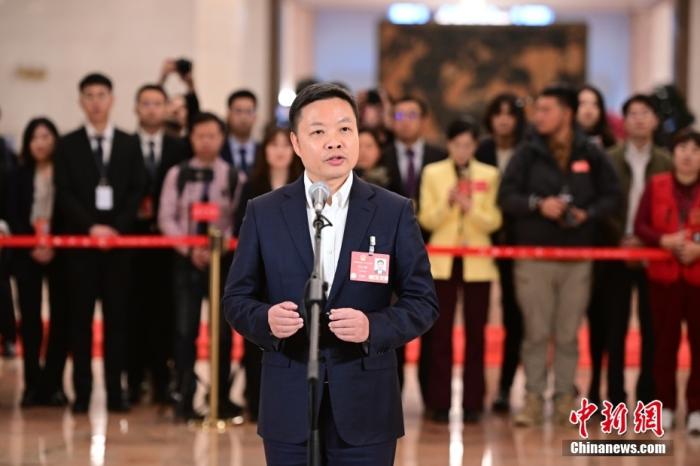 全國人大代表、廣東小鵬汽車科技有限公司董事長(zhǎng)何小鵬接受采訪。中新社記者 田雨昊 攝