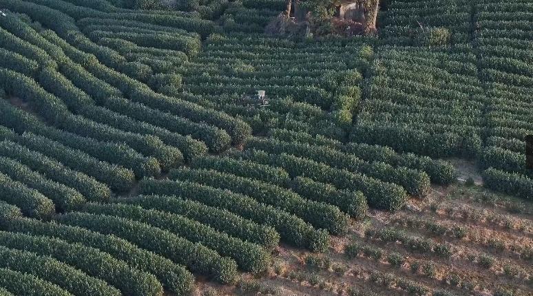 無(wú)人機(jī)正在茶園進(jìn)行凍害巡防作業(yè)。受訪(fǎng)者供圖。