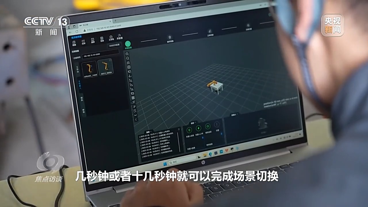 智能機(jī)器人工程師 王晨光:如果要換活兒或者換產(chǎn)線,那就需要人工去重新編程,最簡(jiǎn)單的編程工作也需要花費(fèi)半天或者一天的時(shí)間,還有調(diào)試,而繹焊機(jī)器人加持了人工智能,幾秒鐘或者十幾秒鐘就可以完成場(chǎng)景切換,能夠適應(yīng)個(gè)性化的復(fù)雜生產(chǎn)場(chǎng)景。