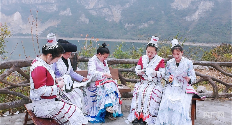 “出山‘手扒巖’、喝水江邊背、住著茅草屋,這曾是我們村的真實寫照。”繡娘楊文麗介紹,當時道路不通,游客也少,繡品運不出去,銷量很不樂觀。