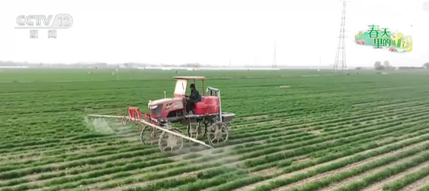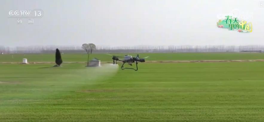 在山東濟(jì)南市,冬小麥正處于田間管理和產(chǎn)量形成的關(guān)鍵期,當(dāng)?shù)剞r(nóng)技人員綜合利用植保無(wú)人機(jī)、水肥一體化智慧滴灌等科技手段,精細(xì)化開展田間管理。