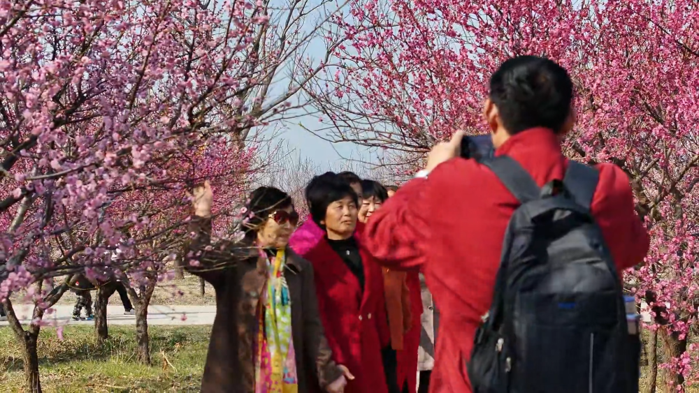 春日里,鄭州市惠濟(jì)區(qū)黃河灘地公園黃河梅園中的梅花次第開(kāi)放,眾多賞花的游客紛紛前來(lái)打卡。(龐錦鵬 攝制)