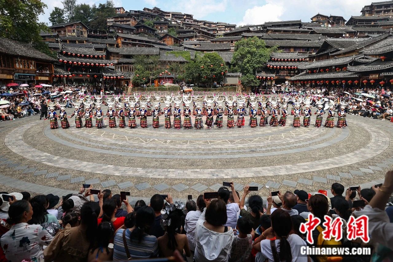 游客在貴州西江千戶苗寨游玩。 中新社記者 瞿宏倫 攝