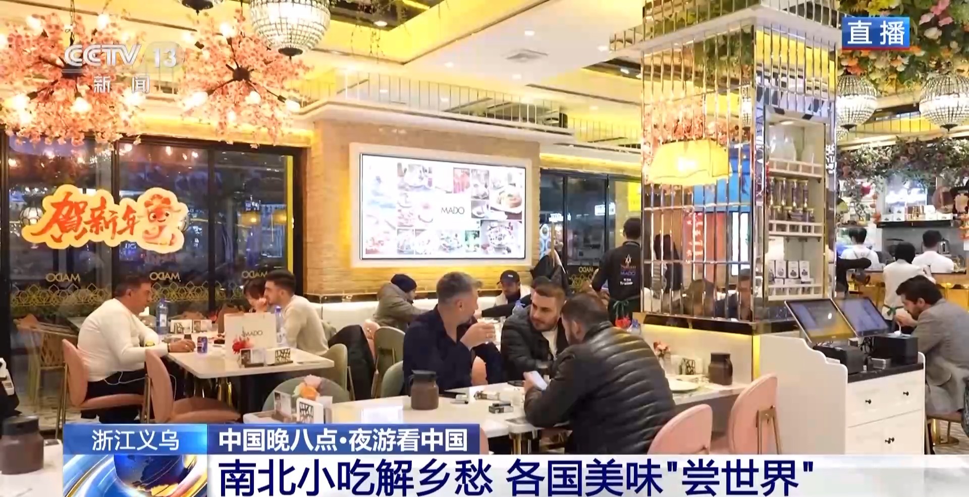 此外,馬路另一側(cè),還能品嘗世界美味,來自世界各地的大廚,直接把餐館開到了義烏,讓你無需搭乘飛機(jī)就能嘗到異國風(fēng)味。在這里不僅能夠聽到天南海北的口音,還能看到不少外國游客也一起“逛吃逛吃”,在這一刻,美食或許就是“通用語言”。