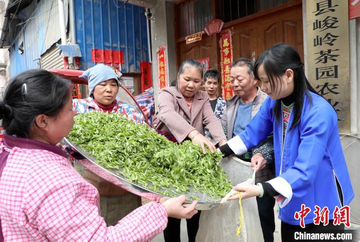 3月22日,在廣西三江侗族自治縣獨(dú)峒鎮(zhèn)八協(xié)村,茶農(nóng)在銷售茶青。龔普康 攝