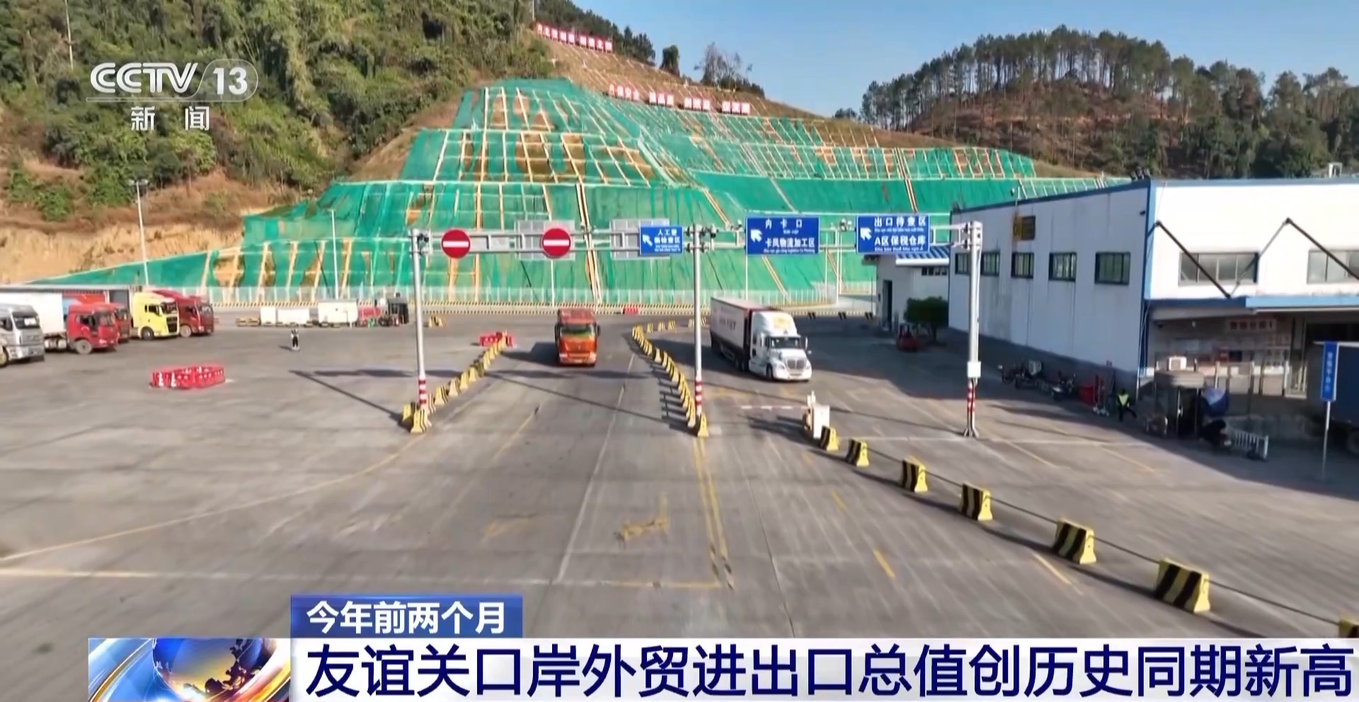 據(jù)友誼關(guān)海關(guān)統(tǒng)計,今年前兩個月,經(jīng)友誼關(guān)口岸進(jìn)出口貨值728.9億元,同比增長10.9%,創(chuàng)歷史新高;進(jìn)出口貨運量85萬噸,同比增長38.3%。進(jìn)出境車輛11.4萬輛,同比增長10.2%。