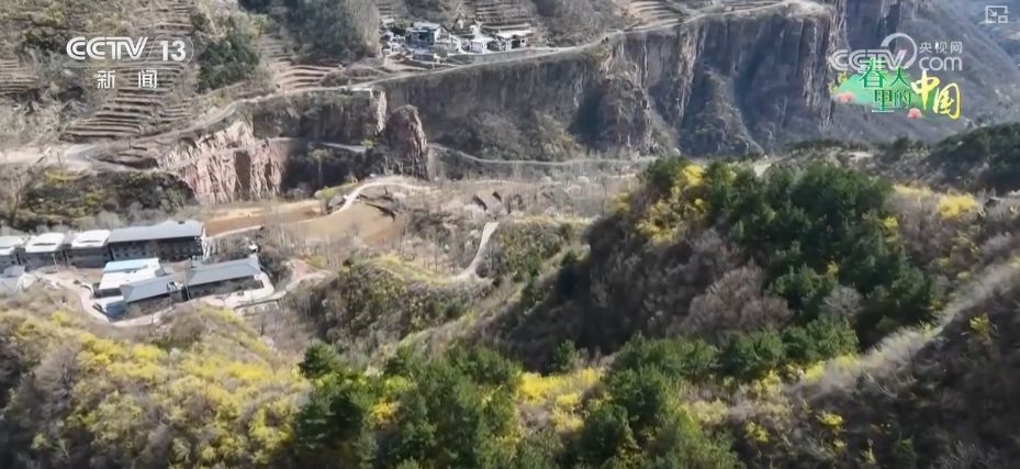 在新鄉(xiāng)輝縣市南太行萬仙山景區(qū),海拔1300米的山腰上,三五成簇的連翹花盛開在崖壁、山坡和溝谷當中,為巍峨的太行山披上一身“黃金甲”。淡雅的黃色花瓣在溫柔的春光里隨風舞動、芳香四溢,游客們在山巒花海中感受濃濃春意。