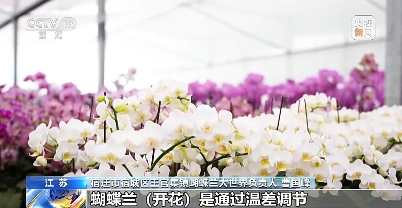 宿遷市宿城區(qū)王官集鎮(zhèn)蝴蝶蘭大世界負(fù)責(zé)人 曹?chē)?guó)峰:其實(shí)蝴蝶蘭的自然花期應(yīng)該是農(nóng)歷年開(kāi)始一直到“五一”,這是自然狀態(tài)?,F(xiàn)在我們通過(guò)技術(shù)干預(yù),想哪一天開(kāi)就哪一天開(kāi)。蝴蝶蘭開(kāi)花是通過(guò)溫差調(diào)節(jié),這個(gè)時(shí)候我們就要用空調(diào),一些恒溫設(shè)備以及除濕設(shè)備進(jìn)行恒溫控制。