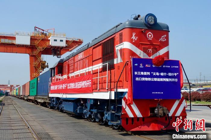 一列滿載100個(gè)標(biāo)準(zhǔn)集裝箱出口日用商品的貨運(yùn)班列,11日從位于浙江的鐵路義烏西站開出,駛向新疆喀什北口岸,這批貨物隨后將從該口岸由汽車轉(zhuǎn)運(yùn)至烏茲別克斯坦首都塔什干,標(biāo)志著長(zhǎng)三角首趟出口貨物鐵公聯(lián)運(yùn)班列(整列)成功開行。