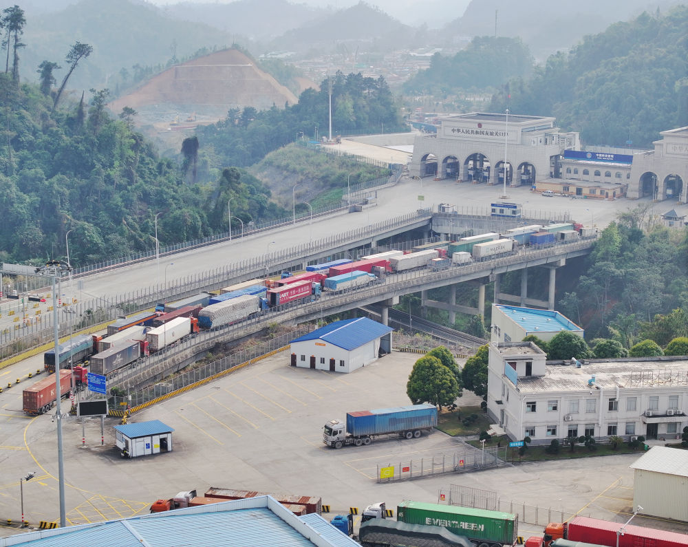 這是2025年3月1日拍攝的廣西憑祥友誼關(guān)口岸(無(wú)人機(jī)照片)。 新華社記者周華攝