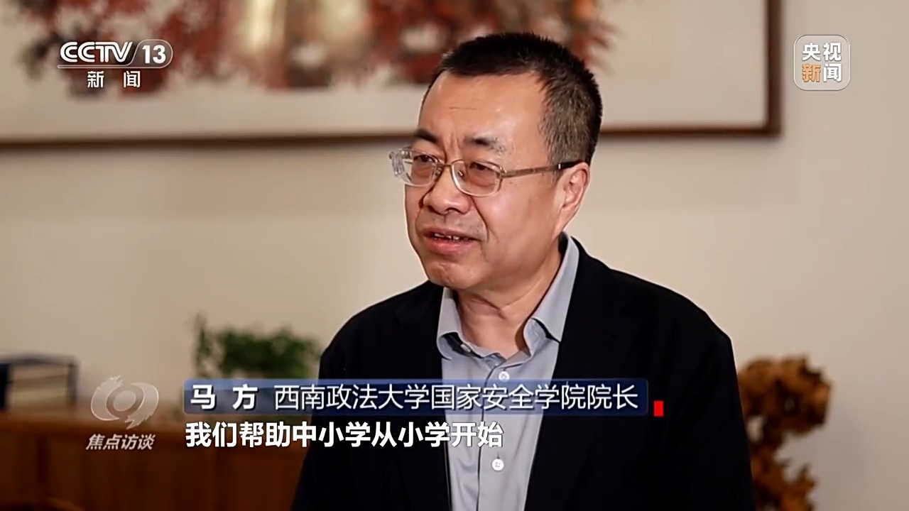 西南政法大學(xué)國家安全學(xué)院院長 馬方:從去年開始,我們開始做國家安全宣傳教育年,幫助中小學(xué)從小學(xué)開始,建立一體化課程體系。我們特別要求國家安全學(xué)的碩士、博士,海外利益安全的本科生必須要參加宣講團,在參加宣講團的過程中去理論學(xué)習(xí)、調(diào)研,實際上是對專業(yè)學(xué)習(xí)深化實踐的過程。