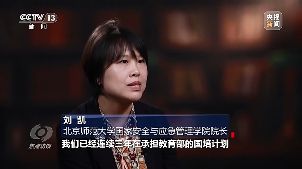 北京師范大學(xué)國家安全與應(yīng)急管理學(xué)院院長 劉凱:我們已經(jīng)連續(xù)三年承擔(dān)教育部的國培計劃。國培計劃就是給全國的中小學(xué)教師講授國家安全相關(guān)的基本知識,等他們回到自己的學(xué)校,在他們?nèi)粘J谡n的時候,就能夠把國家安全的知識融入數(shù)學(xué)課程、物理課程,包括其他一些課程中,這是一個非??沙掷m(xù)的路徑。