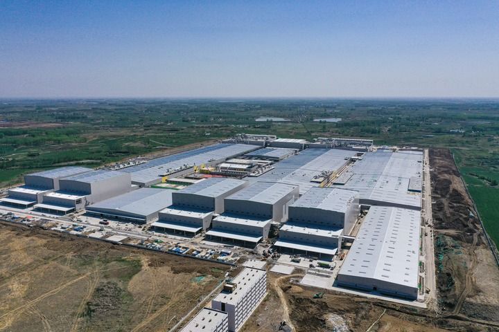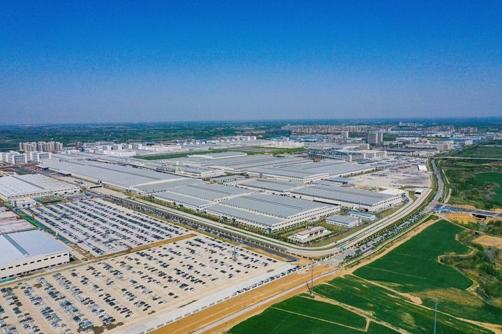 這是4月14日在安徽合肥長豐縣拍攝的中創(chuàng)新航項目(無人機照片)。
