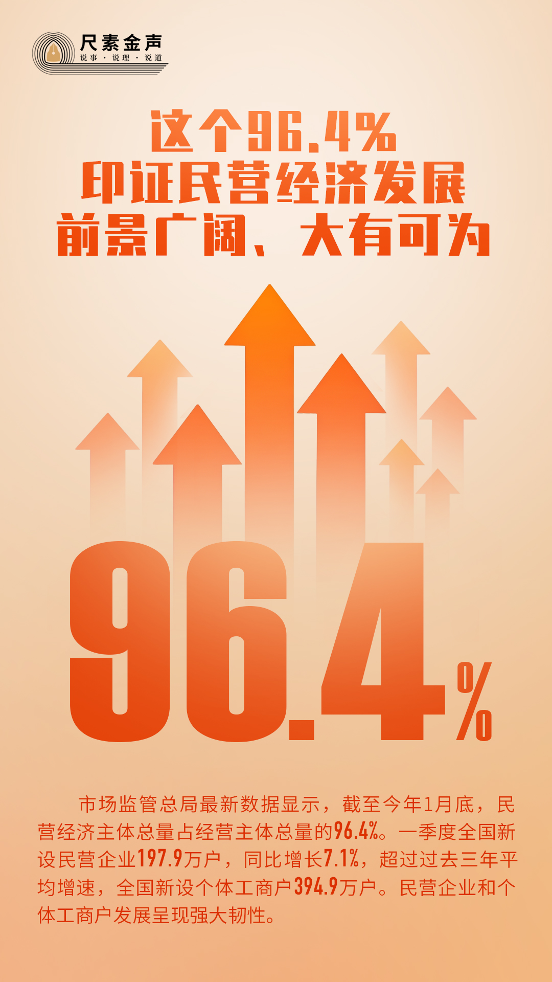 改革開(kāi)放以來(lái),特別是新時(shí)代以來(lái),千千萬(wàn)萬(wàn)個(gè)像章華妹一樣的經(jīng)營(yíng)者,不斷發(fā)展壯大。市場(chǎng)監(jiān)管總局最新數(shù)據(jù)顯示,截至今年1月底,民營(yíng)經(jīng)濟(jì)主體總量占經(jīng)營(yíng)主體總量的96.4%。一季度全國(guó)新設(shè)民營(yíng)企業(yè)197.9萬(wàn)戶(hù),同比增長(zhǎng)7.1%,超過(guò)過(guò)去三年平均增速,全國(guó)新設(shè)個(gè)體工商戶(hù)394.9萬(wàn)戶(hù)。民營(yíng)企業(yè)和個(gè)體工商戶(hù)發(fā)展呈現(xiàn)強(qiáng)大韌性。