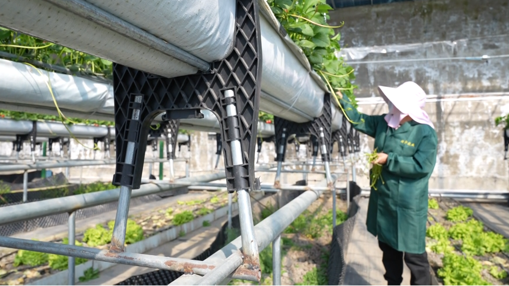 村民正在數(shù)字溫室大棚里管護草莓苗(央廣網發(fā) 同江市融媒體中心供圖)