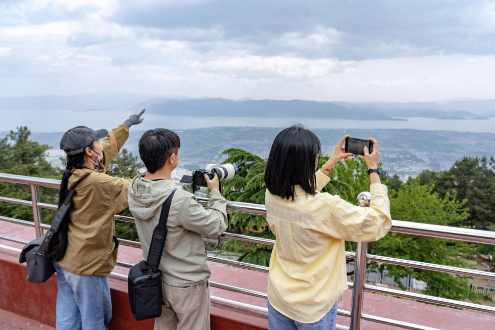2025年4月23日,游客在大理蒼山玉帶路欣賞風光。新華社發(fā)(羅鑄攝)