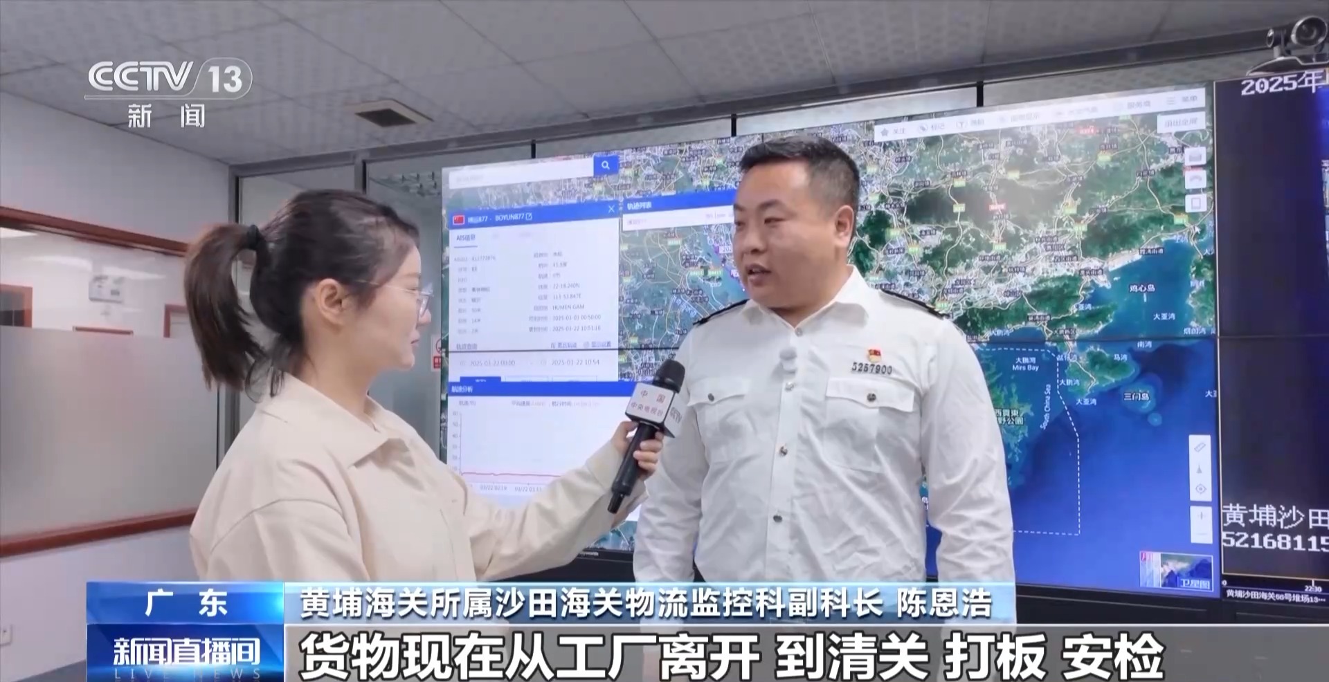 黃埔海關(guān)所屬沙田海關(guān)物流監(jiān)控科副科長 陳恩浩:貨物現(xiàn)在從工廠離開,到清關(guān)、打板、安檢、裝船以及發(fā)運(yùn)整個環(huán)節(jié),最快可以在14個小時內(nèi)完成。我們還在不斷優(yōu)化流程、提高效率,未來預(yù)計還可以節(jié)約2到3小時。