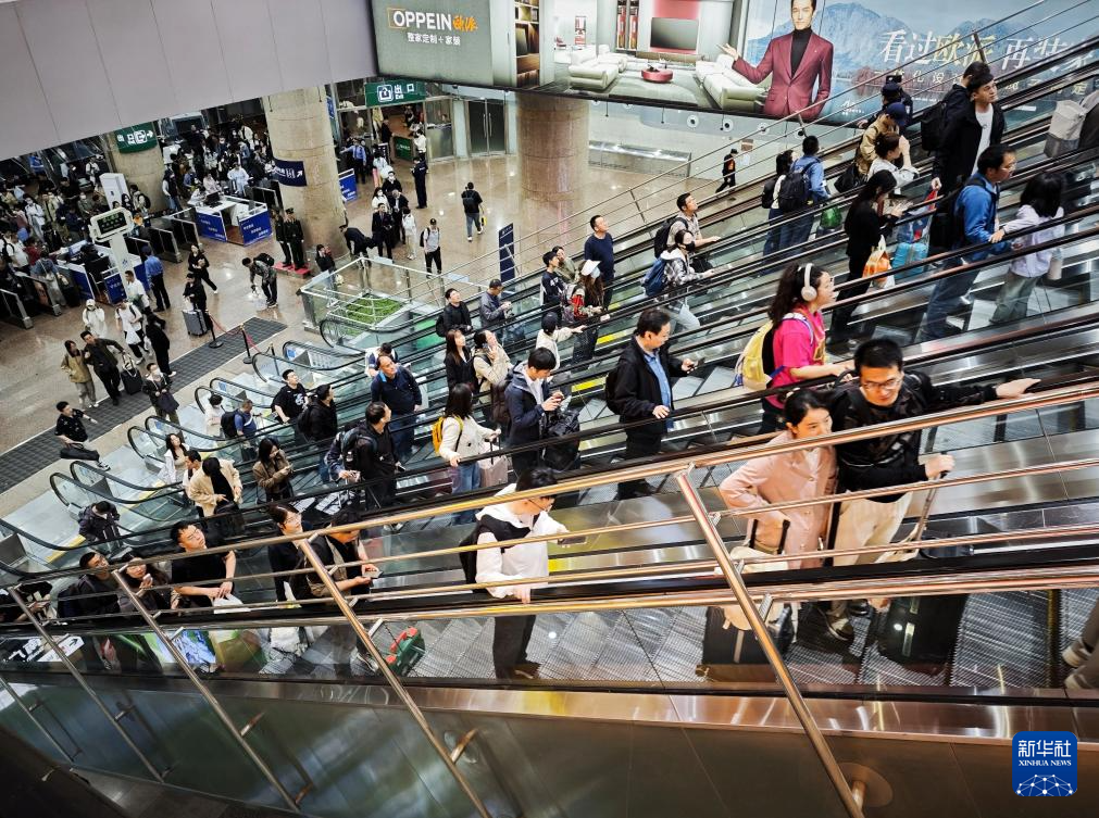 4月30日,旅客在南京火車站乘車出行。新華社發(fā)(蘇陽 攝)