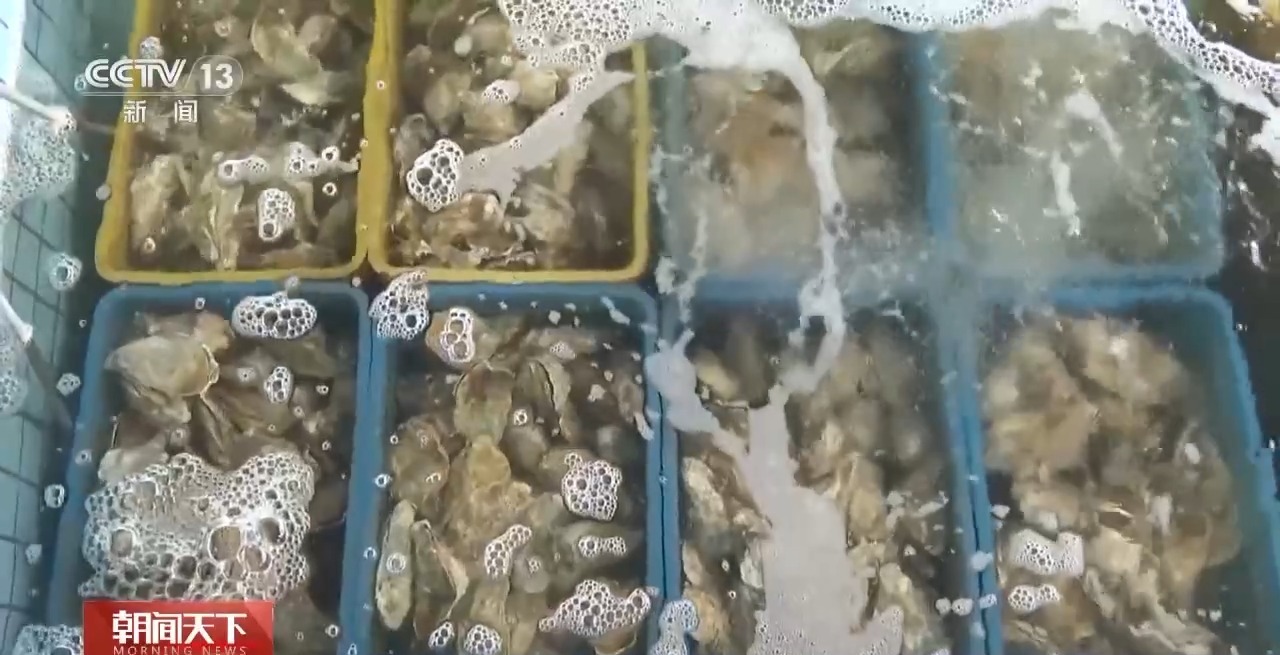 記者隨后來到當(dāng)?shù)匾患疑柤庸て髽I(yè),看到工作人員將剛剛卸貨的生蠔進(jìn)行分揀、清洗、凈化,去除體內(nèi)泥沙和雜質(zhì),這些新鮮的生蠔第二天便可發(fā)往全國各地。