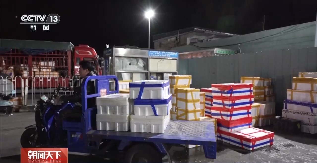 總臺央視記者 張琪:在北京大紅門京深海鮮批發(fā)市場,凌晨2點(diǎn)半,進(jìn)場的車輛絡(luò)繹不絕,物流停車場也停滿了正在卸貨的貨車。