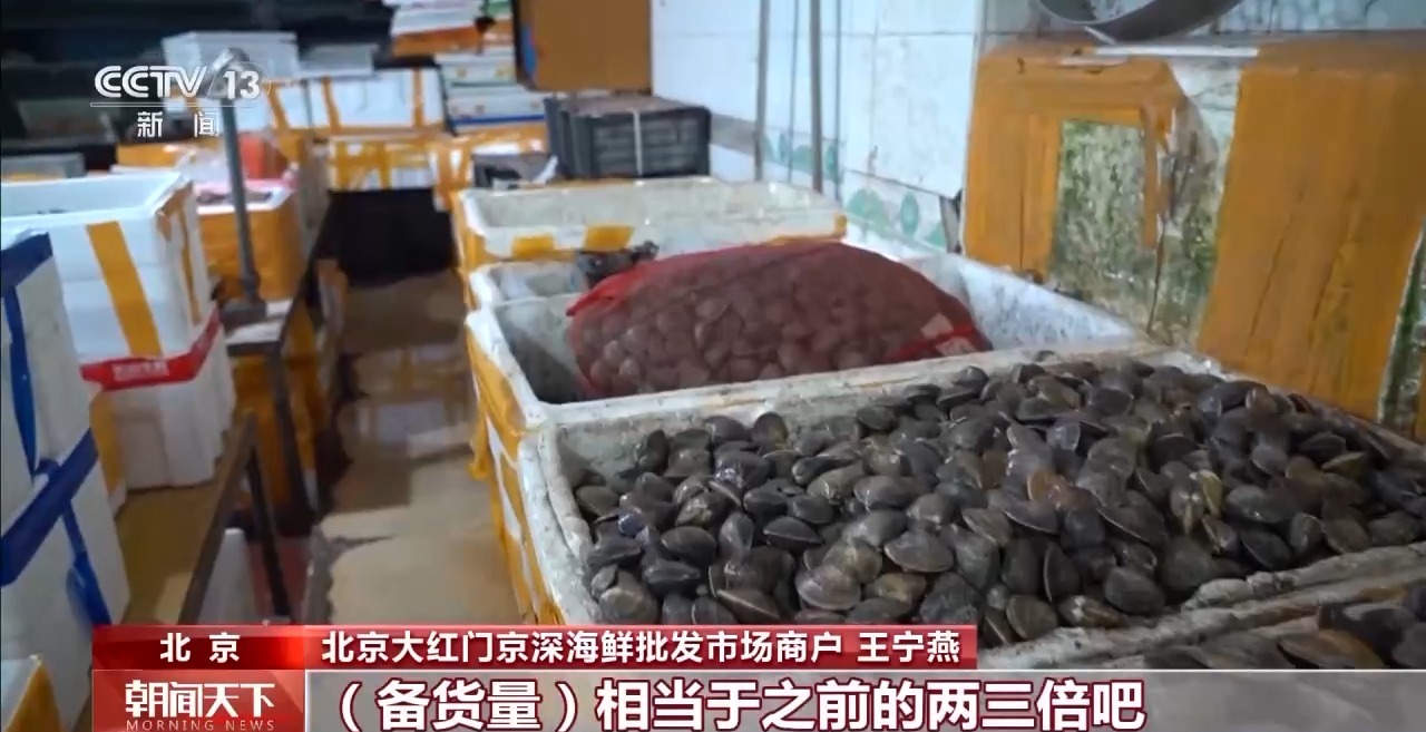 北京大紅門京深海鮮批發(fā)市場商戶 王寧燕:根據(jù)“五一”的情況,扇貝、生蠔這種適合聚餐的,我們會多備一點(diǎn),備貨量相當(dāng)于之前的兩三倍吧。