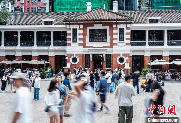 5月3日,眾多游客在香港集古跡及藝術(shù)館于一身的建筑群“大館”參觀(guān)游覽。 中新社記者 侯宇 攝