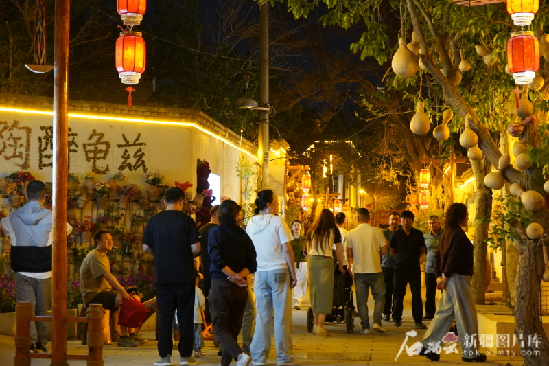 “五一”假期,庫車市熱鬧的夜晚。 孟文靜攝