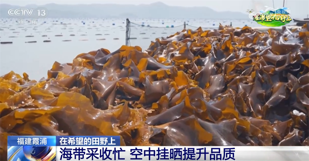 福建寧德市霞浦縣被譽為“中國海帶之鄉(xiāng)”,是我國海帶的主產(chǎn)區(qū)之一。這幾天,當(dāng)?shù)氐?5萬畝海帶迎來豐收,養(yǎng)殖戶們忙著將成品海帶收獲上岸,再運送到晾曬場晾曬,形成了獨特的“空中曬場”。