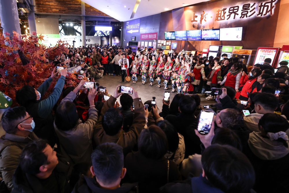 2月25日,觀眾在貴陽越界影城觀看侗族大歌表演。新華社記者 歐東衢 攝
