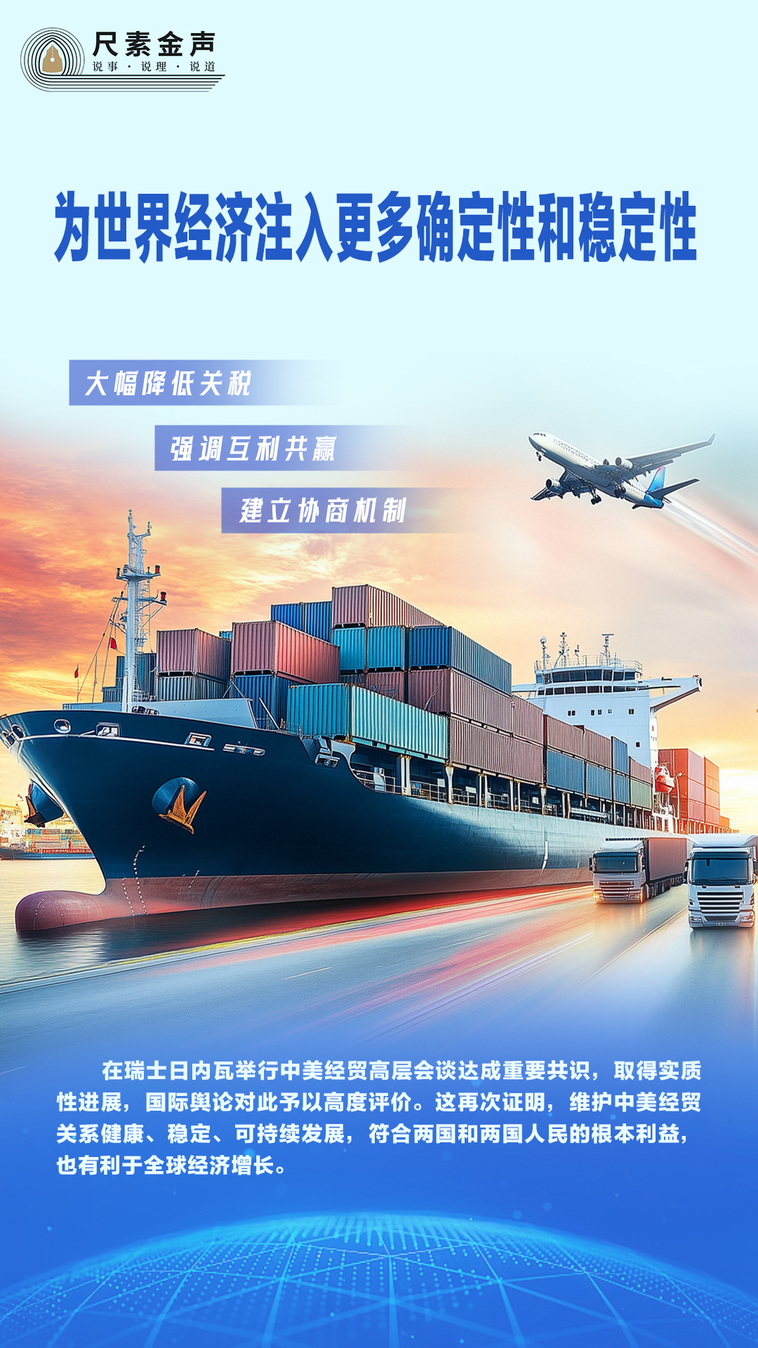 在瑞士日內(nèi)瓦舉行中美經(jīng)貿(mào)高層會談達成重要共識,取得實質(zhì)性進展,國際輿論對此予以高度評價。這再次證明,維護中美經(jīng)貿(mào)關(guān)系健康、穩(wěn)定、可持續(xù)發(fā)展,符合兩國和兩國人民的根本利益,也有利于全球經(jīng)濟增長。