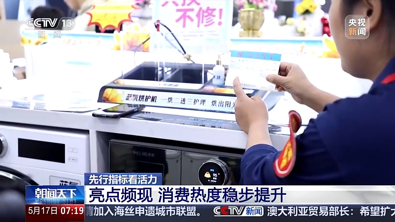 國家信息中心今天(17日)發(fā)布了一系列先行指標,記者從中發(fā)現(xiàn),4月份以來,在一系列宏觀政策協(xié)同發(fā)力下,消費、投資、工業(yè)生產(chǎn)等多領域保持向好態(tài)勢。