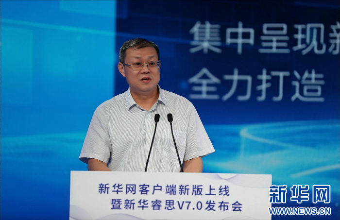 新華網(wǎng)黨委常委、總編輯車玉明介紹新華網(wǎng)客戶端新版情況。新華網(wǎng) 劉廈 攝