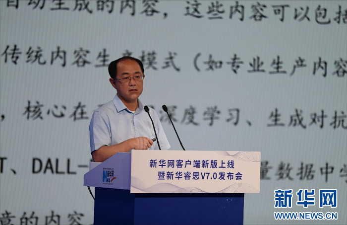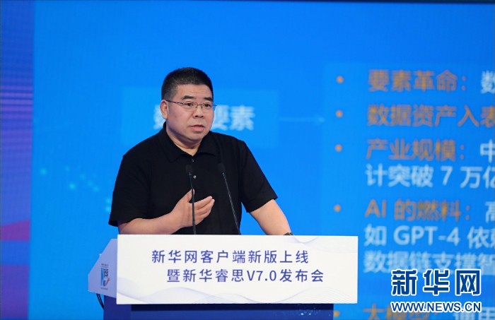 新華網(wǎng)黨委委員、首席信息官姚予疆介紹新華睿思7.0產(chǎn)品有關(guān)情況。新華網(wǎng) 劉廈 攝