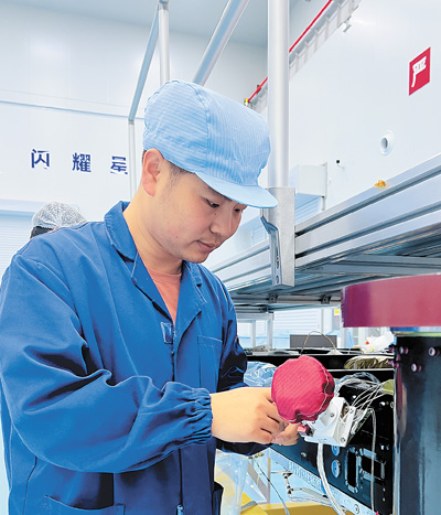 郭帥在檢查衛(wèi)星敏感器的連接部件。微納星空公司供圖