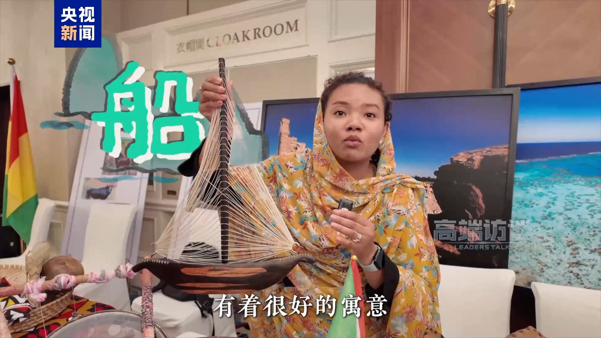 蘇丹駐華使館工作人員 林米婭·亞當:我會用船(來象征中非友誼),boat的中文意思是船,有著很好的寓意——一帆風順,希望中非關系一帆風順。