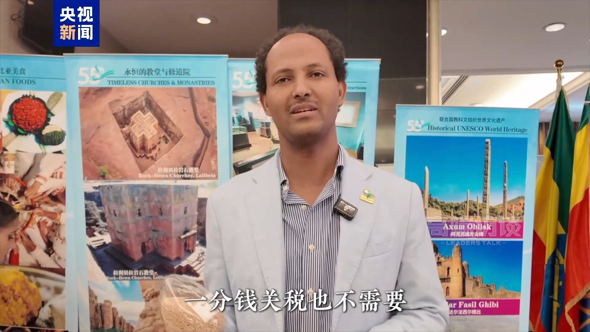 埃塞俄比亞駐華使館工作人員 內(nèi)比尤·博加勒:我們出口這些到中國市場不需要支付關稅,一分錢關稅也不需要。