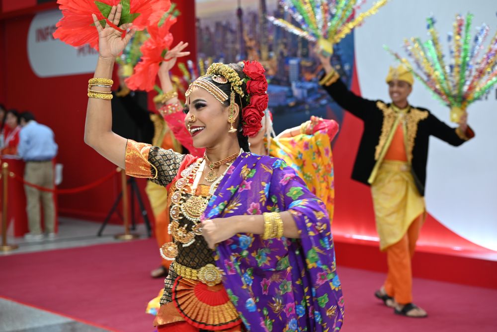 5月27日,馬來西亞參展人員在展會(huì)現(xiàn)場為觀眾帶來傳統(tǒng)舞蹈表演。新華社記者 陳愛平 攝