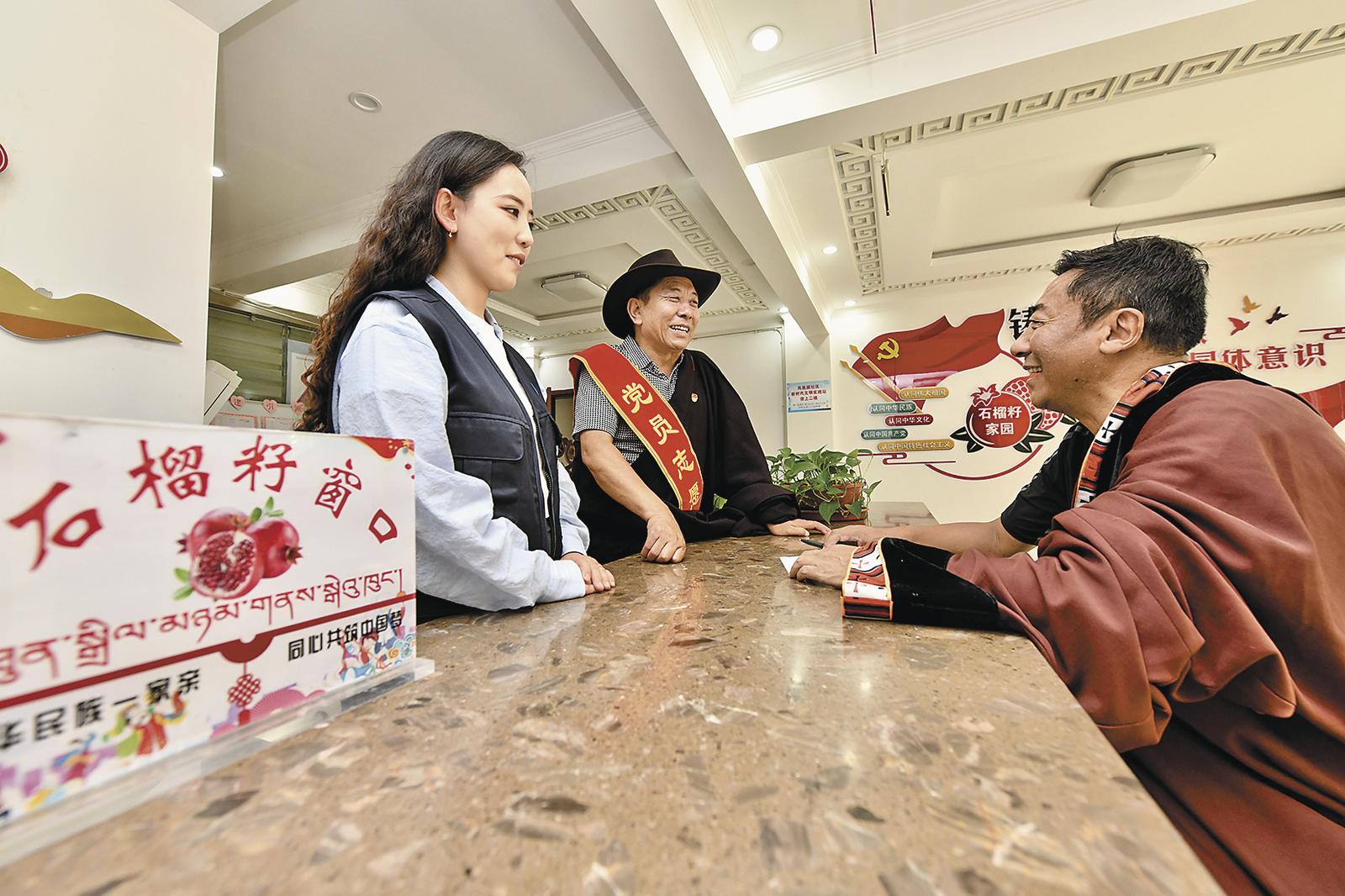 “你看,這是藏語(yǔ)版的宣傳冊(cè)。之前您反映惠企政策的宣傳手冊(cè)看不懂,青海警官職業(yè)學(xué)院的老師為我們做了翻譯,這下能看懂了吧!”在位于西寧市城中區(qū)南灘街道建新社區(qū)的扎閣林民族歌劇院內(nèi),社區(qū)黨委副書記楊麗手拿雙語(yǔ)宣傳冊(cè),開心地找到了經(jīng)理完么才讓。