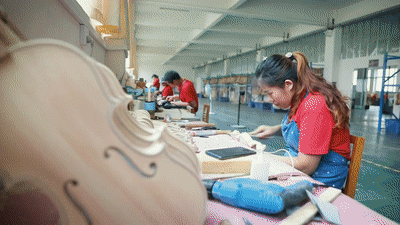 2015年以來,確山縣“筑巢引鳳”,發(fā)展制琴產業(yè)。王金堂等60余名制琴師陸續(xù)返鄉(xiāng)創(chuàng)業(yè)。如今,全縣共有提琴生產企業(yè)144家,形成從木材處理、配件雕刻到油漆噴涂的完整產業(yè)鏈,年產值突破6億元,出口創(chuàng)匯超千萬美元,帶動了2600余人在家門口就業(yè)。