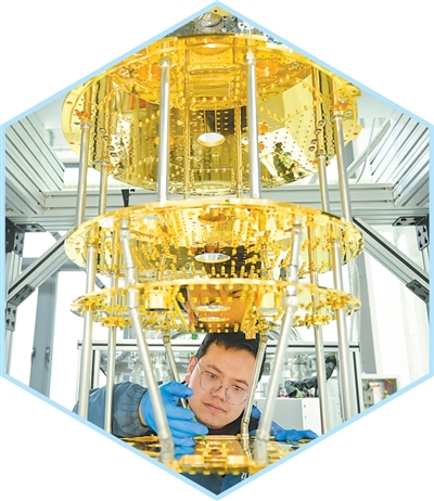 安徽合肥一家科技公司的技術(shù)人員在安裝稀釋制冷機的換熱組件。劉玉才攝(影像中國)