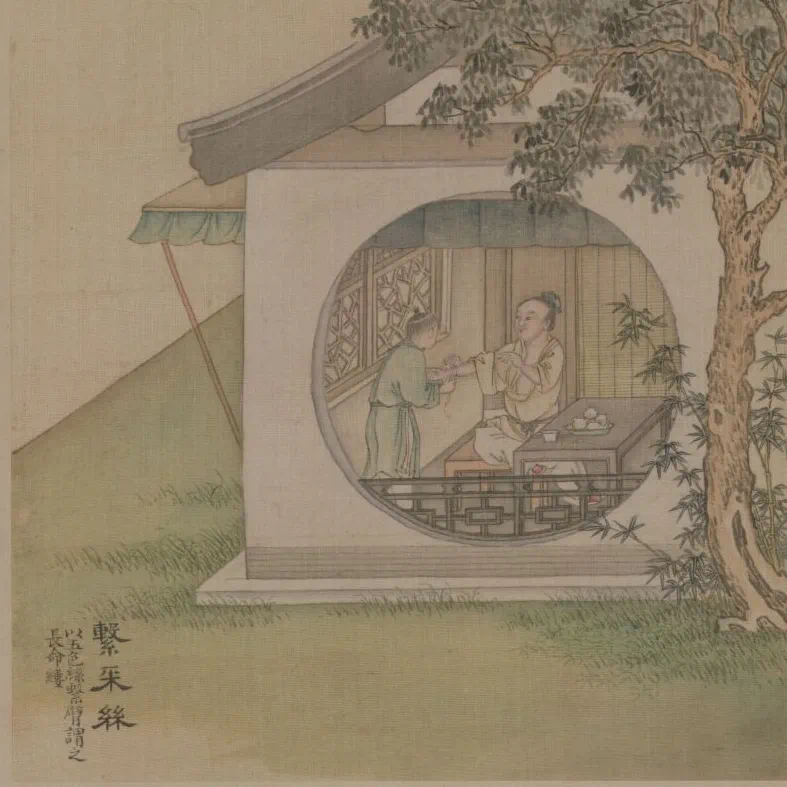 △《系采絲》,題:“以五色絲系臂,謂之長(zhǎng)命縷?!?/p>