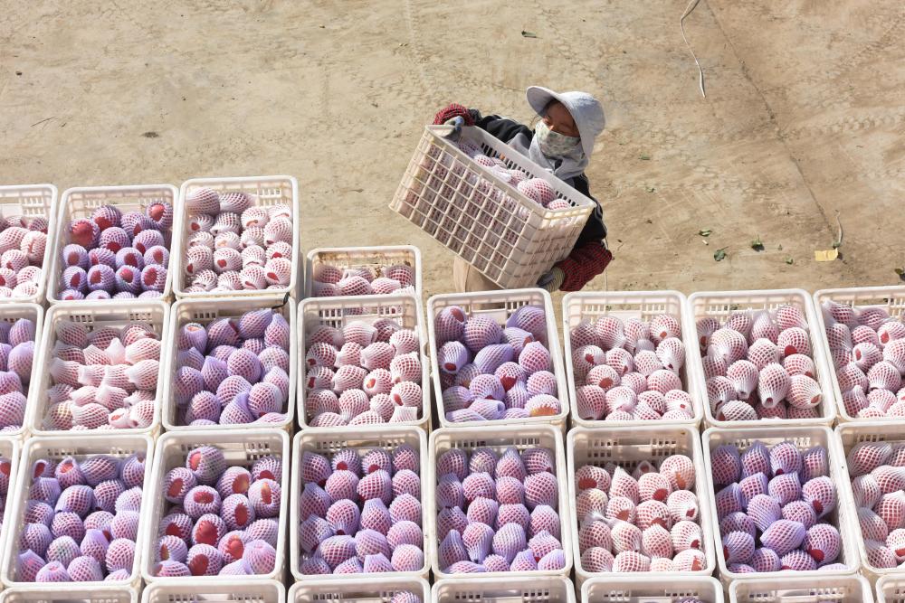 當(dāng)?shù)胤N植的蘋(píng)果皮薄肉嫩、甜脆汁多,深受消費(fèi)者喜愛(ài)