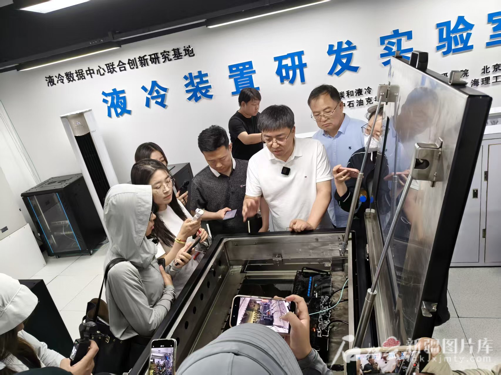 5月16日,在克拉瑪依云計(jì)算產(chǎn)業(yè)園區(qū)的碳和液冷數(shù)據(jù)中心,相關(guān)負(fù)責(zé)人在向記者介紹數(shù)據(jù)中心內(nèi)部能源循環(huán)利用原理。天山網(wǎng)-新疆日?qǐng)?bào)記者 張治立 攝
