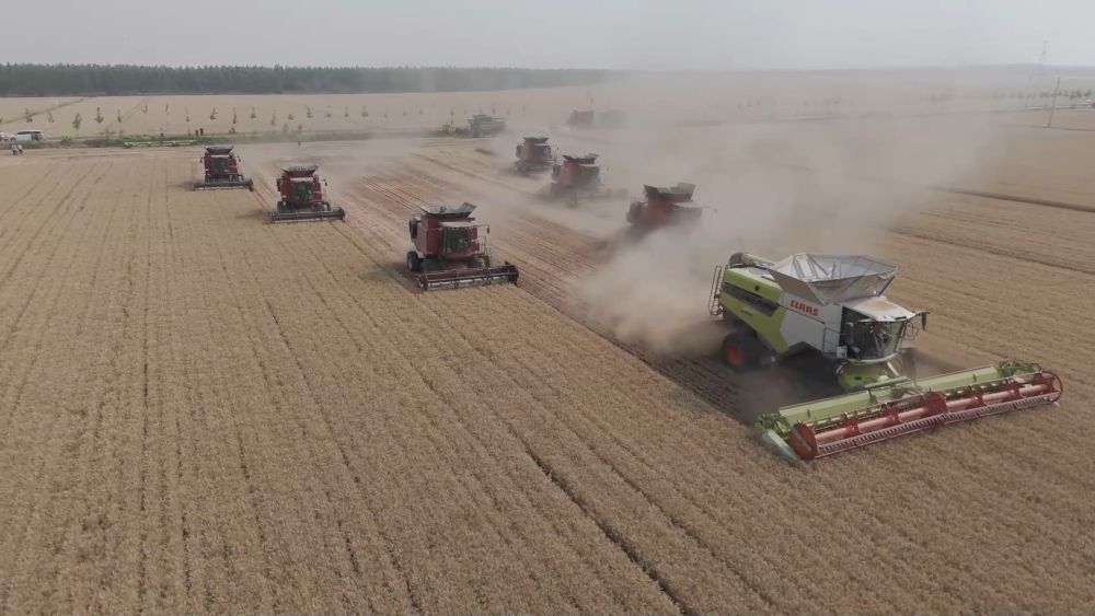 5月29日,位于河南省西華縣的黃泛區(qū)農(nóng)場(chǎng)內(nèi)麥浪滾滾。一望無際的麥田里,大型聯(lián)合收割機(jī)來回穿梭,這也標(biāo)志著黃泛區(qū)農(nóng)場(chǎng)正式迎來今年小麥大面積機(jī)收。