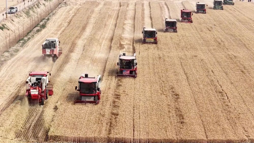 眼下,多地進(jìn)入夏收、夏種、夏管“三夏”農(nóng)忙期,全國“三夏”大規(guī)模小麥機(jī)收全面展開。收割機(jī)開足馬力馳騁在金色的麥田中,一排排小麥被整齊地切割、脫?!瓘V袤農(nóng)田一片繁忙景象。