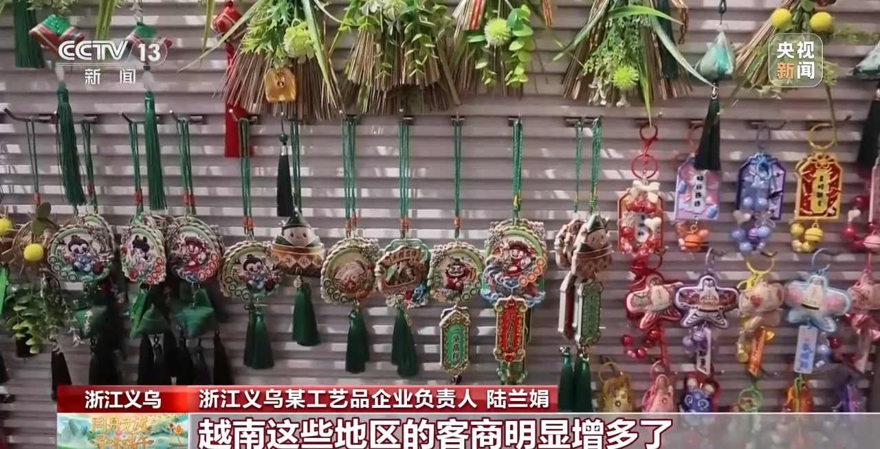 浙江義烏某工藝品企業(yè)負(fù)責(zé)人 陸蘭娟:以前香囊的消費(fèi)群體以國(guó)內(nèi)為主,這兩年,越來(lái)越多的外國(guó)客商來(lái)咨詢(xún)。前年賣(mài)出了15萬(wàn)個(gè)左右,去年訂單翻了一番,有30萬(wàn)個(gè)。那今年的訂單也明顯超過(guò)了過(guò)去,尤其是新加坡、馬來(lái)西亞、越南這些地區(qū)的客商明顯增多。