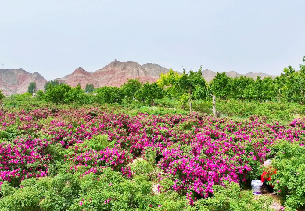 當(dāng)玫瑰選擇了苦水,當(dāng)苦水邂逅了玫瑰,“苦”和“香”在這塊形似眼睛的土地上,發(fā)酵兩百多年后,終于釀出了一個(gè)甜蜜醉人的“苦水花香”產(chǎn)業(yè):