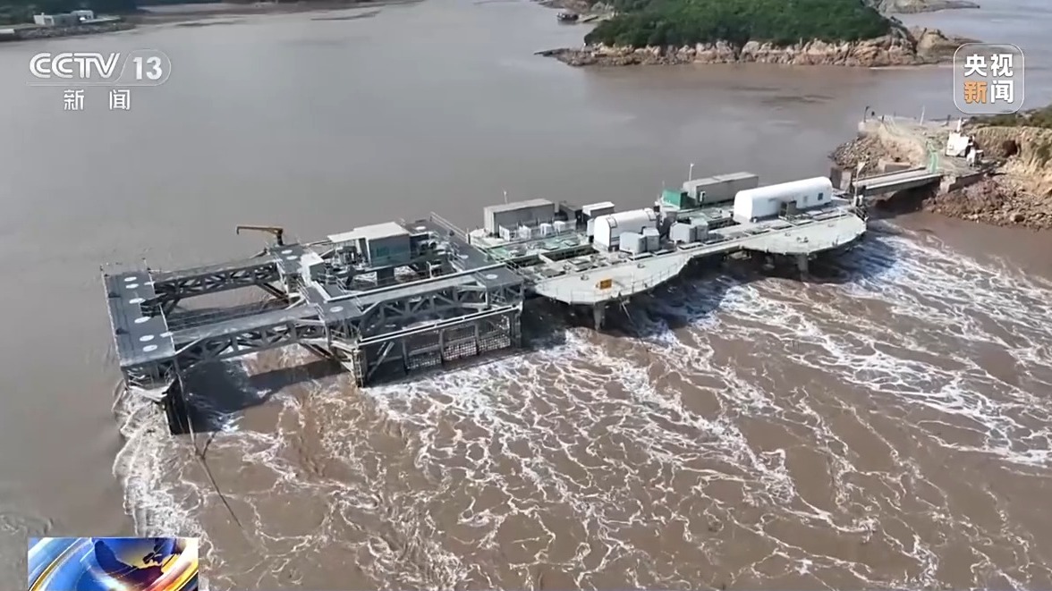 記者在浙江舟山海域看到,我國(guó)自主研發(fā)制造的首臺(tái)LHD兆瓦級(jí)潮流能“奮進(jìn)號(hào)”發(fā)電機(jī)組,通過(guò)平臺(tái)式模塊化設(shè)計(jì),有效提高了潮流利用率和穩(wěn)定性,率先實(shí)現(xiàn)兆瓦級(jí)大功率穩(wěn)定并網(wǎng)發(fā)電。目前,LHD海洋潮流能發(fā)電站已連續(xù)并網(wǎng)運(yùn)行超8年。與國(guó)際主流技術(shù)相比,LHD海洋潮流能發(fā)電項(xiàng)目采用了“平臺(tái)式+模塊化”的技術(shù)路徑,好比把風(fēng)機(jī)倒轉(zhuǎn)垂直插入總成平臺(tái)的一個(gè)個(gè)“工位”里。同時(shí)增加了防護(hù)網(wǎng),既能起到導(dǎo)流、整流的作用,還能防止海洋垃圾對(duì)葉片的損害,有效破解了海上安裝、運(yùn)行維護(hù)、垃圾防護(hù)、電力輸送等關(guān)鍵問(wèn)題。
