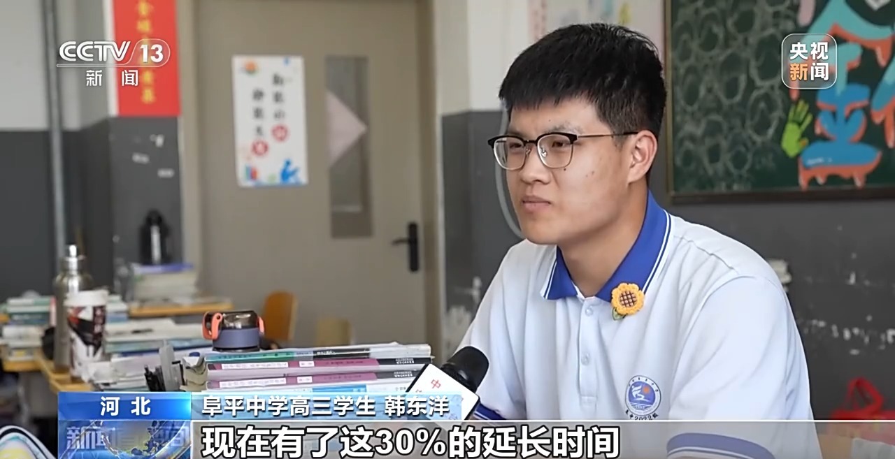阜平中學高三學生 韓東洋:正常人他們寫300字左右,我大概才能寫200多字,就比如說語文,平常模擬考試的時候,大概還有個二三百或三四百字就寫不完,現(xiàn)在有了這30%的延長時間,心里就比較踏實了。